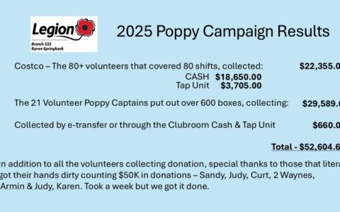Today the Byron-Springbank Legion alone has over 600 members and 50 volunteers.