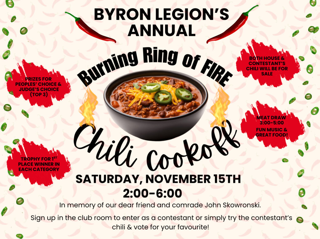 Annual Chili Cookoff – 2:00 – 6:00 PM November 15th