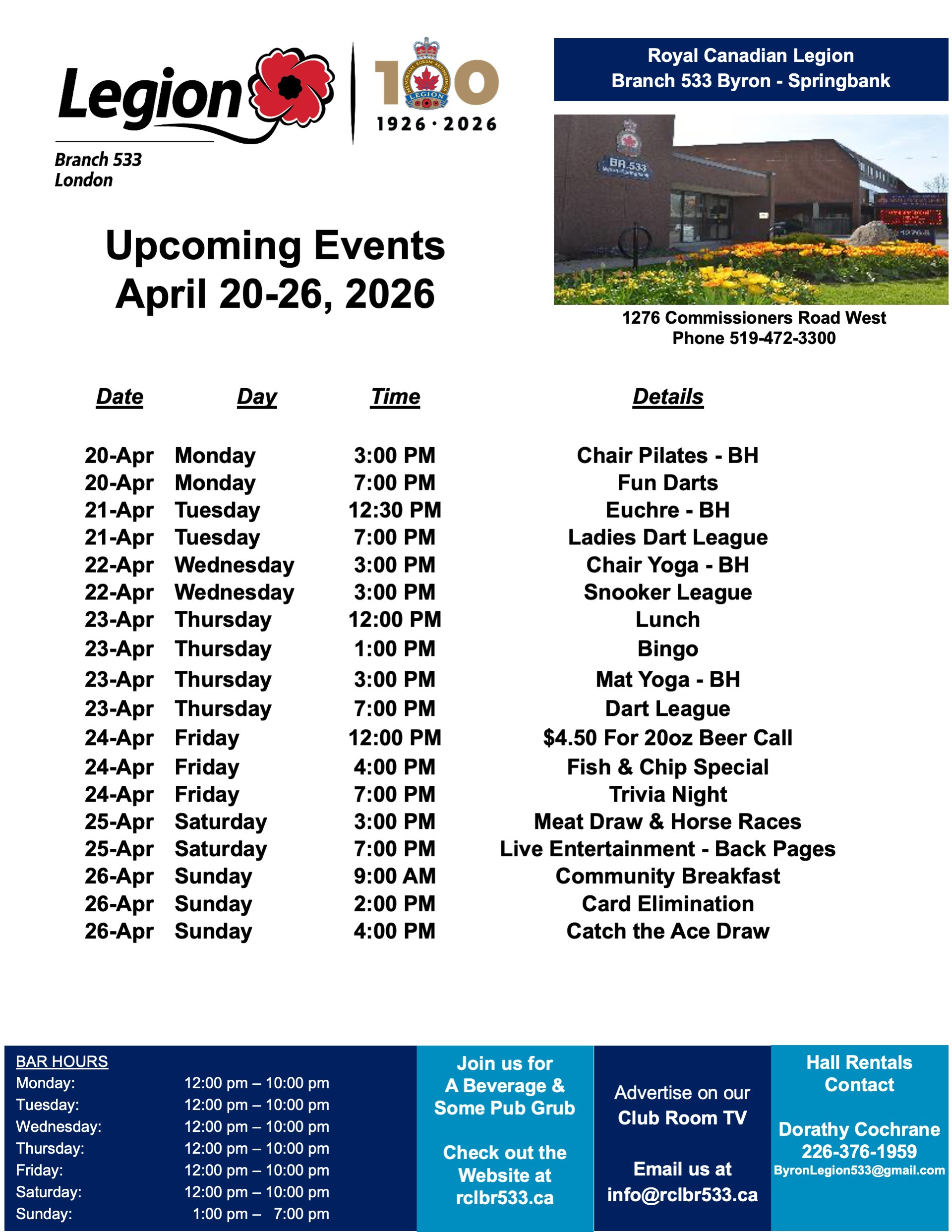 We’ve got a full and exciting week ahead at the Legion—read on for highlights, and check the posters for more details.