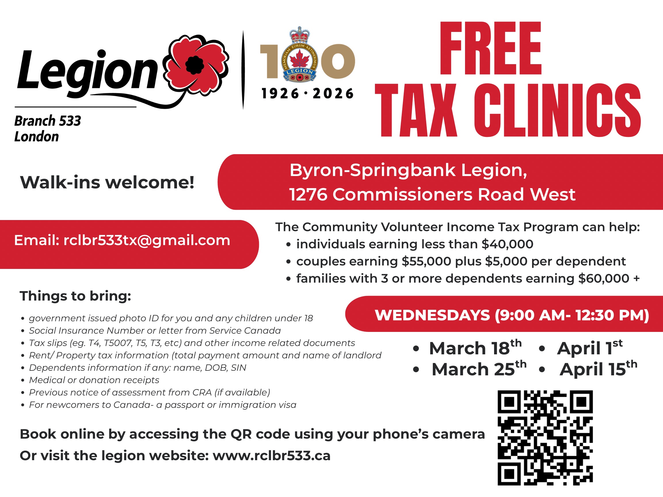 Uncategorized Free Tax Clinic By RCLBR533 Admin Click to book an appointment time Click to enlarge and/or print Watch The Olympics on our big Screen – 6-22 Feb 2026 2026 Byron-Springbank Legion Public Speaking Contest